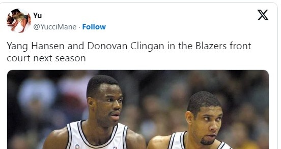 凭借这些独特的技能,杨有望成为开拓者的长期贡献者。他可能不会成为“中国约基奇”,但只要他能保持高效,他就有可能变得出色。有球迷已开始拿杨瀚森、克林根与马刺双塔比较了。