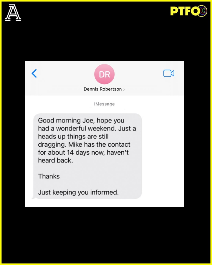 Pablo表示,他可以证实,这就是小卡舅舅Dennis Robertson和Joe Sanberg关于额外2000万股票合同的沟通短信截图,最终这个4800万合同中2000万的股票是在四年内从Aspiration公司创始人之一的Joe Sanberg个人持股中支付。