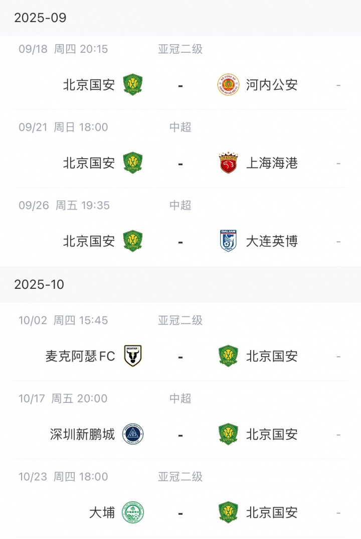 25/26赛季亚冠二级联赛小组赛抽签,北京国安为东亚区的一档球队,同组对手如下。